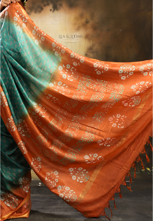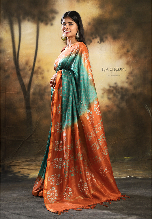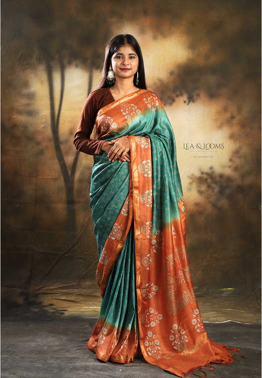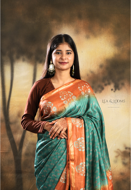 Experience the graceful charm of Ayana, a luxurious pure Kattan silk saree that beautifully blends heritage craftsmanship with timeless elegance. Meticulously block printed by hand, each motif tells a story of tradition, precision, and artistry.