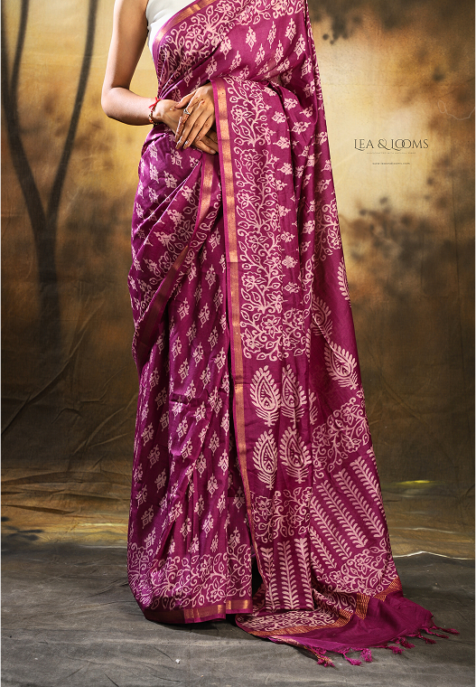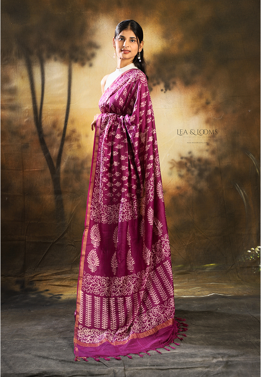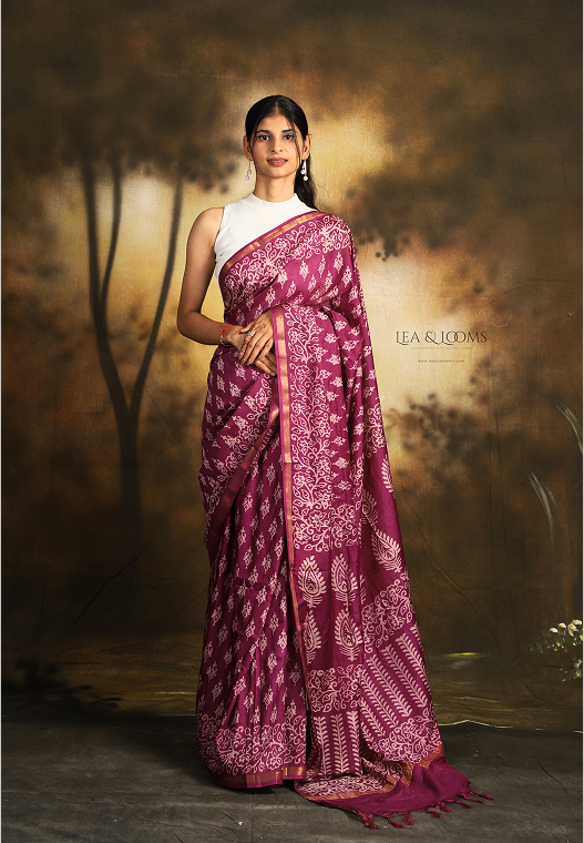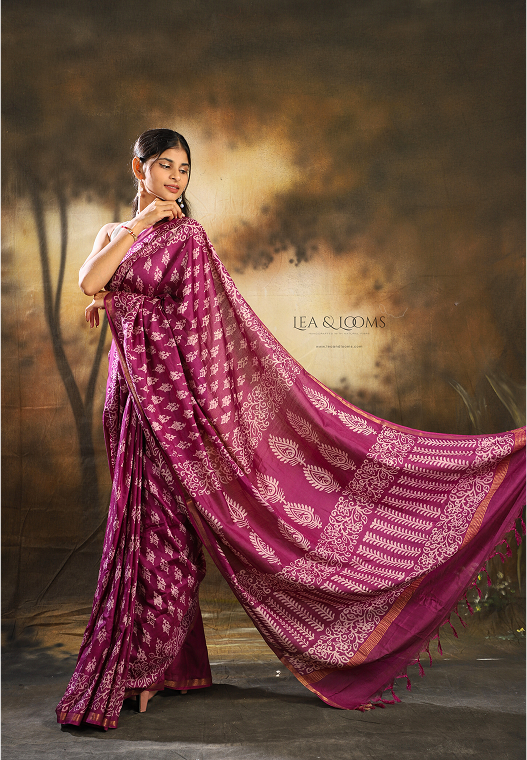 Experience the graceful charm of Miraah, a luxurious pure Kattan silk saree that beautifully blends heritage craftsmanship with timeless elegance. Meticulously block printed by hand, each motif tells a story of tradition, precision, and artistry.
