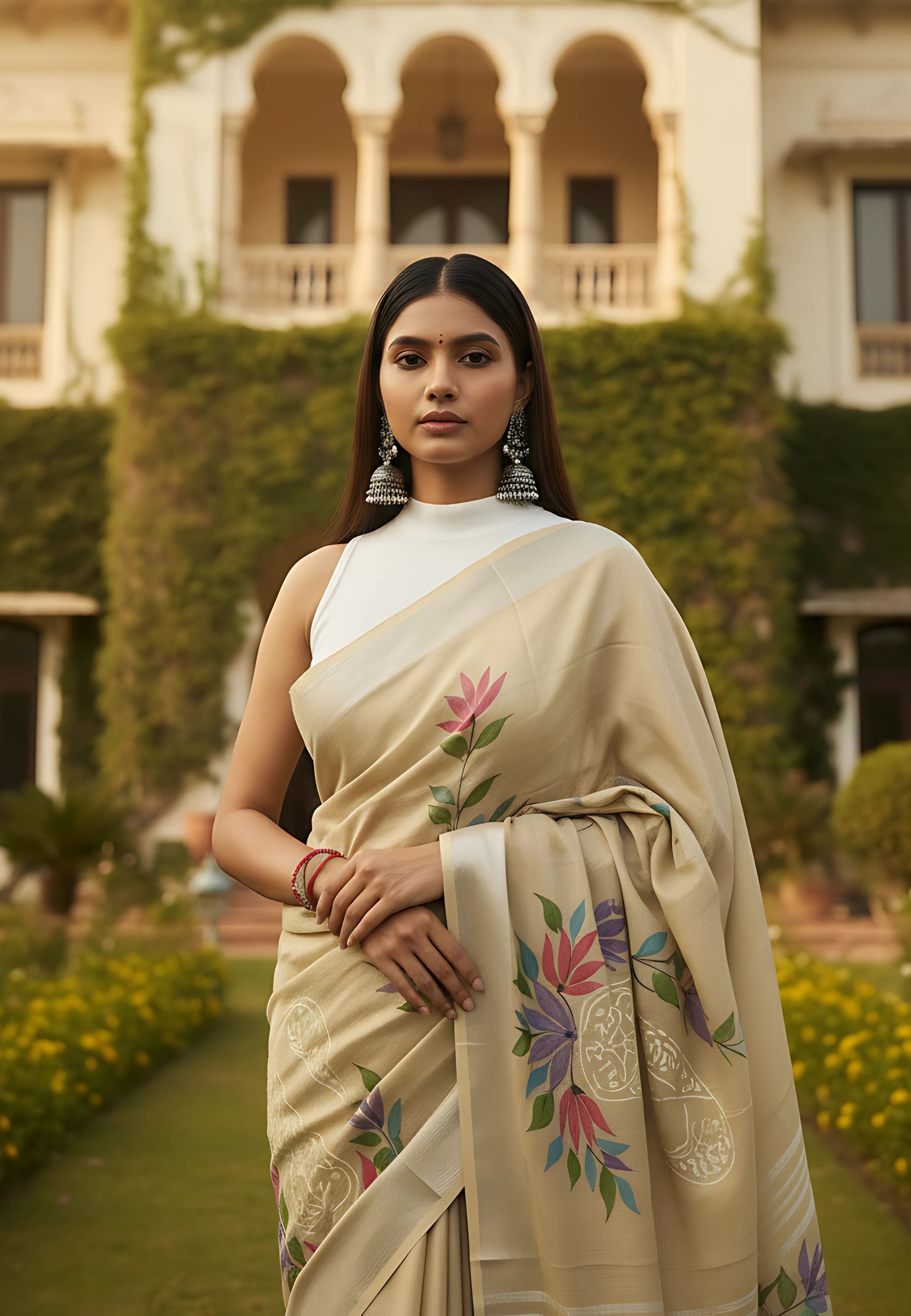 • To minimize waste and uphold our sustainable values, We work on 'Made to Order' basis, We have the natural sarees always ready with us we just need colour and finish accordingly.