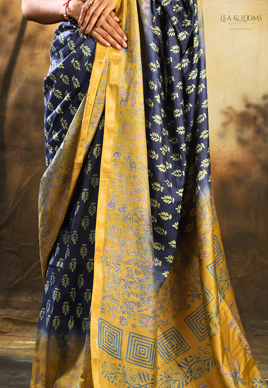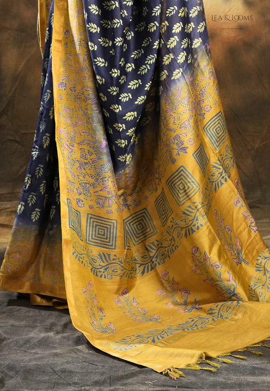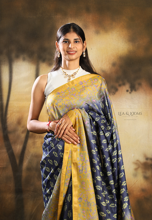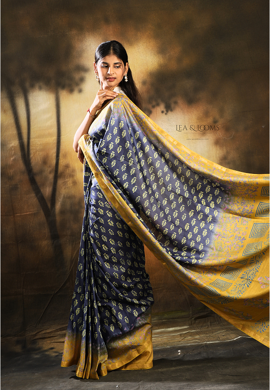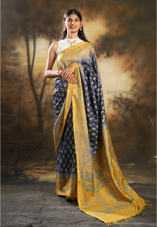 Experience the graceful charm of Rivaah, a luxurious pure Kattan silk saree that beautifully blends heritage craftsmanship with timeless elegance. Meticulously block printed by hand, each motif tells a story of tradition, precision, and artistry.